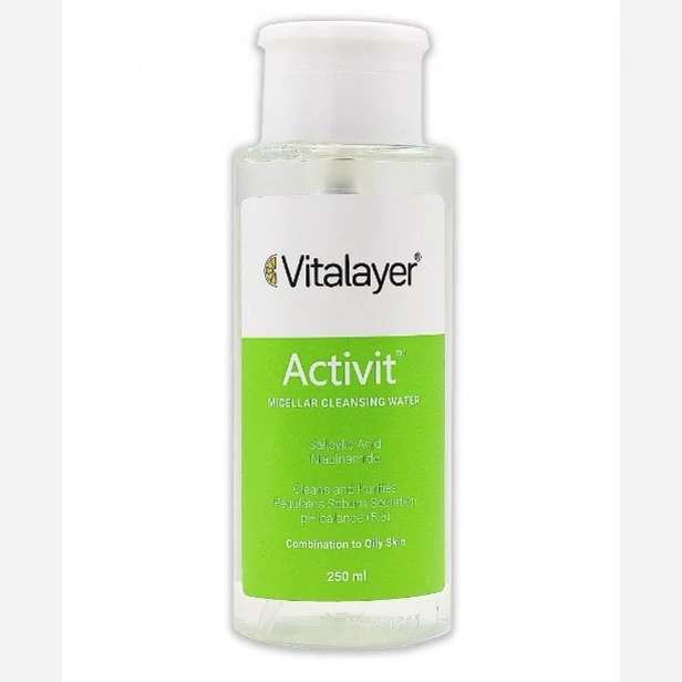 محلول پاککننده آرایش اکتیویت ویتالیر مناسب پوست چرب و مختلط ۲۵۰ میل؛ پاکسازی عمیق بدون خشکی و براقیت کمتر