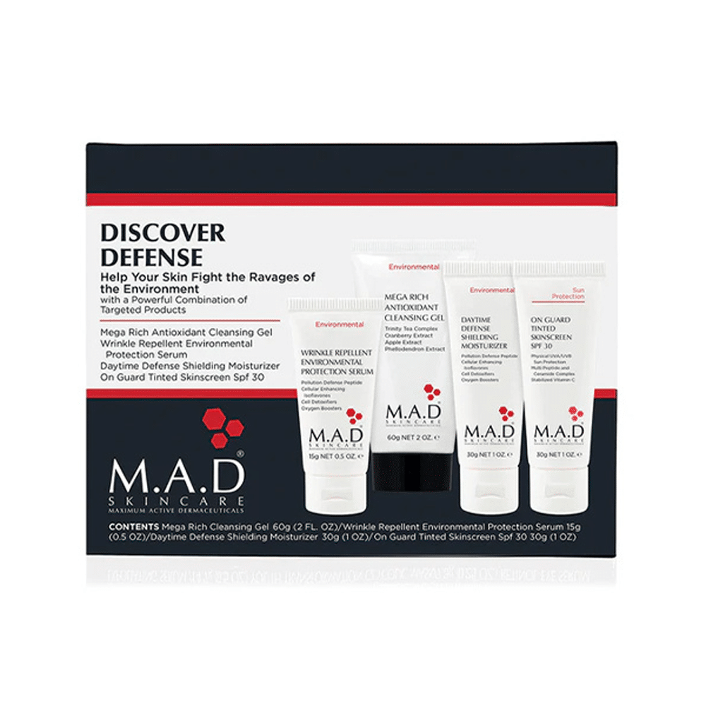 پکیج محافظ پوست ام ای دی – Discover Defense M.A.D یک مجموعه کامل برای حفاظت پوست در برابر عوامل مخرب محیطی است. این پکیج با ترکیب محصولات تخصصی، از پوست در برابر آلودگی هوا، استرسهای محیطی و اشعههای مضر خورشید محافظت میکند و همزمان به بازسازی و تقویت سد دفاعی طبیعی پوست کمک مینماید.