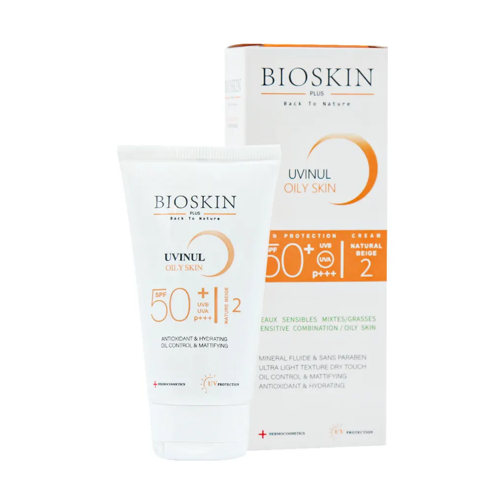 کرم ضد آفتاب SPF50 بایو اسکین پلاس مخصوص پوست چرب رنگ بژ طبیعی؛ محافظت قدرتمند با فینیش مات و یکنواخت